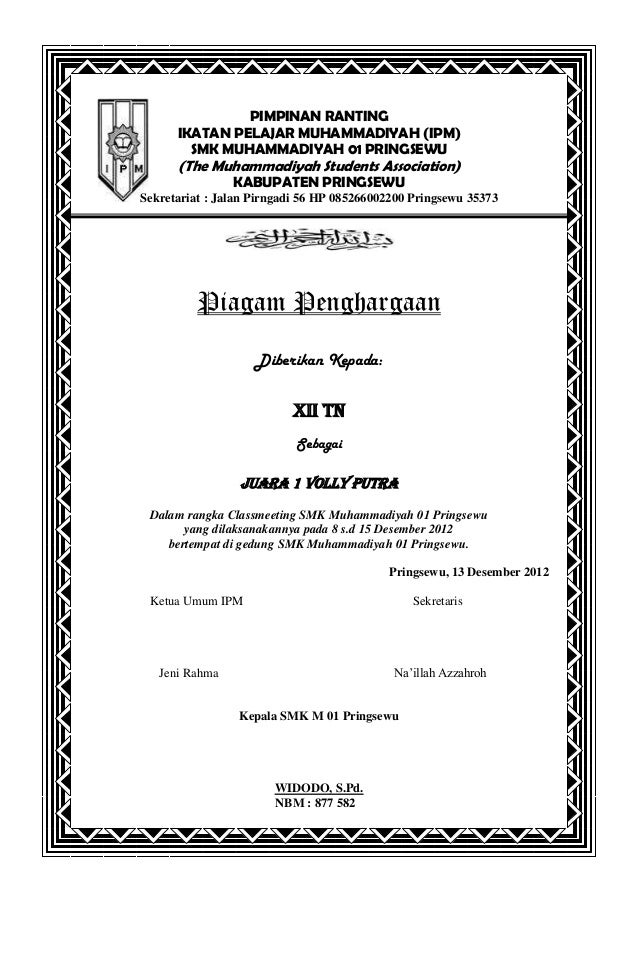 Related : Contoh Piagam Penghargaan Lomba Volly - Contoh piagam penghargaan lomba volly..